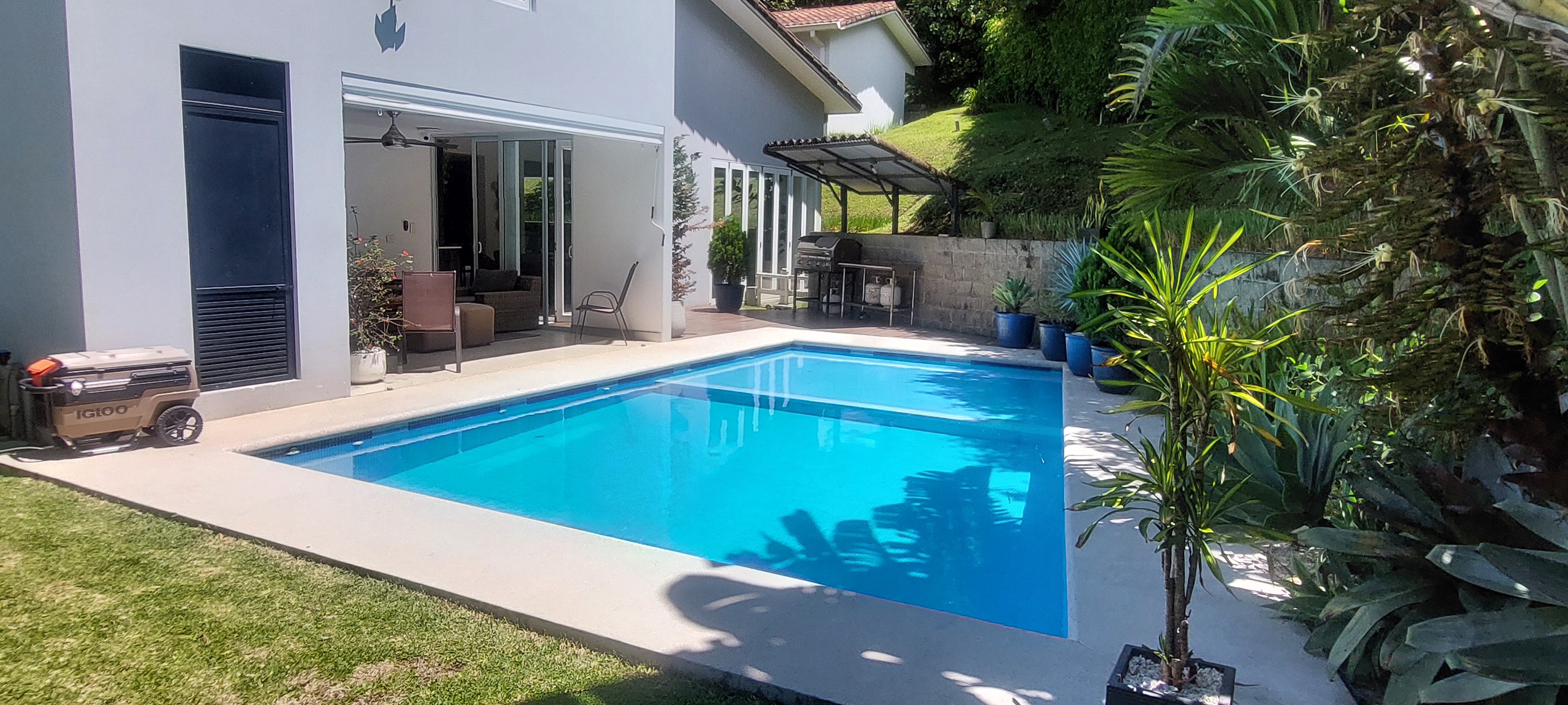 La casa está diseñada para disfrutar de la compañía de familiares y amigos por sus amplias áreas sociales que se complemetan muy bien con una piscina al aire libre, solarium, una terraza, un área BBQ y zonas verdes alrededor de la casa.