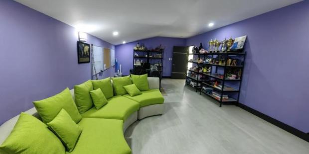 En otra área de la casa hay una sala privada de cine, gimnasio, baño de visitas, otro baño completo con ducha, una amplia oficina y sala de juegos.